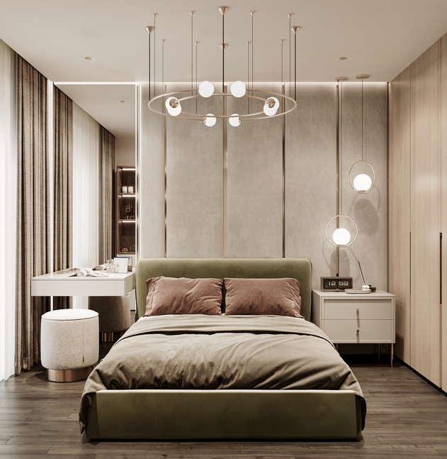 В прихожей предусмотрели удобные системы хранения, где можно оставить все рабочие заботы за порогом. Спальня превратилась в настоящий оазис уюха с мягкими панелями и продуманным освещением - здесь царит атмосфера для отдыха и уединения.