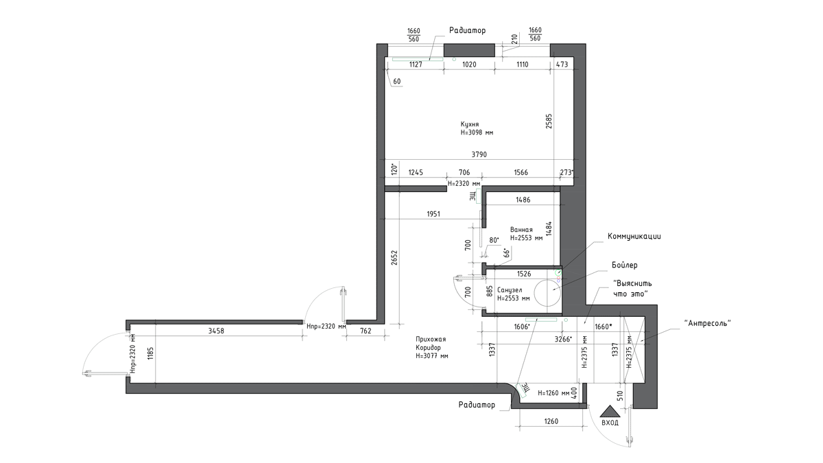 Зеркальный шкаф визуально расширил прихожую, а будущая мебель в коридоре перекликнется с кухонным буфетом. Трогательная деталь - фрамуги над дверями, повторяющие элементы из родительского дома. Светлые стены стали нейтральным фоном для этих тёплых воспоминаний.
