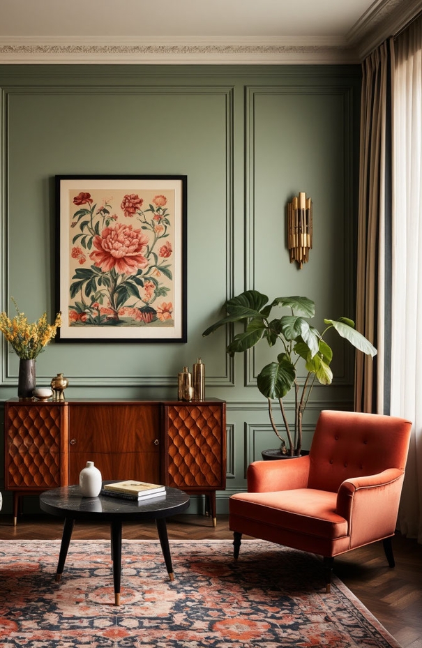 Акцент, а не фон. Винтажный предмет должен быть героем, а не массовкой. Это не набор одинаковых стульев вокруг стола, а одно-единственное эффектное кресло, которое сразу притягивает взгляд. Его сила — в его уникальности на нейтральном современном фоне.